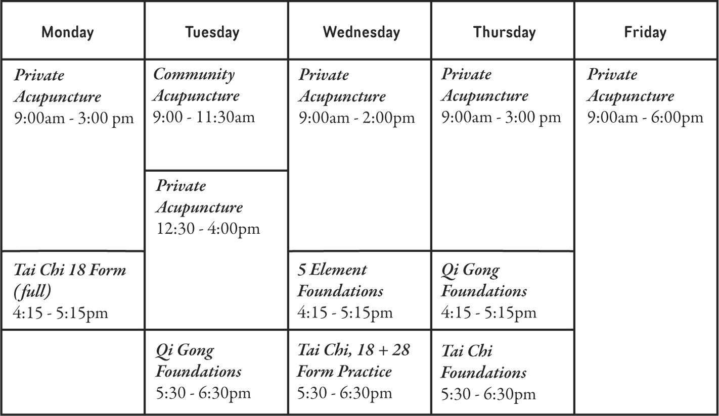 Visit Waypoint for a group class and learn Tai Chi, Qi Gong, Wudang Kung Fu, and Daoist Meditation.